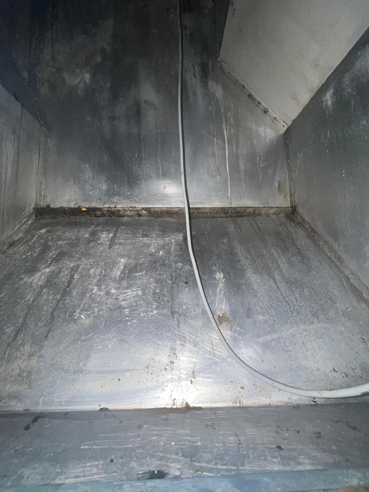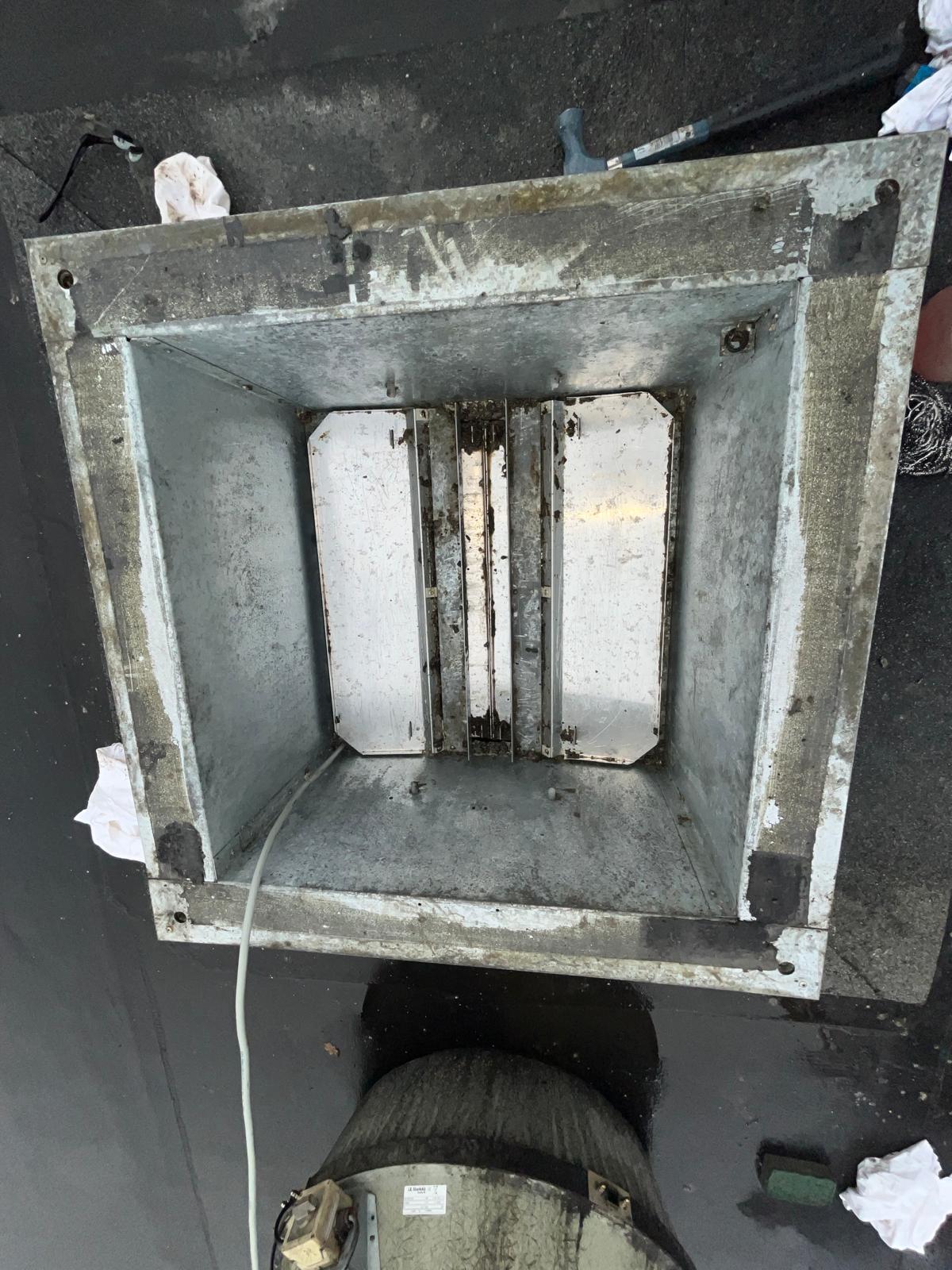 Grondige reiniging van keukenafzuigkanalen om vetophoping te verwijderen.